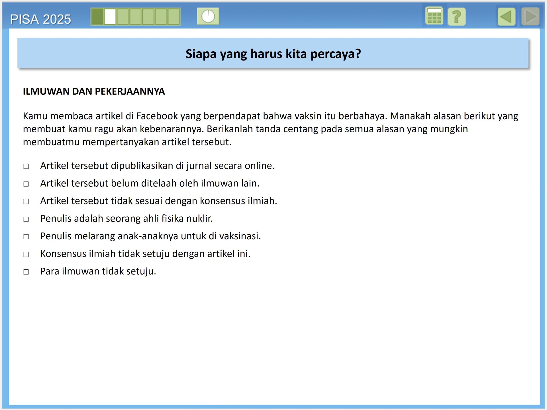 Penilaian PISA 2025 mengukur seberapa baik negara mempersiapkan siswanya dengan pemahaman tentang sains dan bagaimana sains menghasilkan pengetahuan yang dapat diandalkan. Hal ini sangat penting bagi warga negara yang perlu mengambil keputusan pribadi berdasarkan data tentang fenomena yang berhubungan dengan sains, seperti kesehatan dan lingkungan, untuk terlibat dalam tindakan dalam keluarga mereka, komunitas lokal, dan masyarakat luas. Hal ini sangat penting di abad ke-21 ketika manusia menghadapi masa depan yang tidak pasti saat memasuki era Antroposen, yaitu era dimana pengaruh manusia secara signifikan mengubah sistem bumi. Pengetahuan tentang sains menjadi penting di tingkat individu, regional, dan global seperti yang kita upayakan untuk mengatasi dampak tersebut