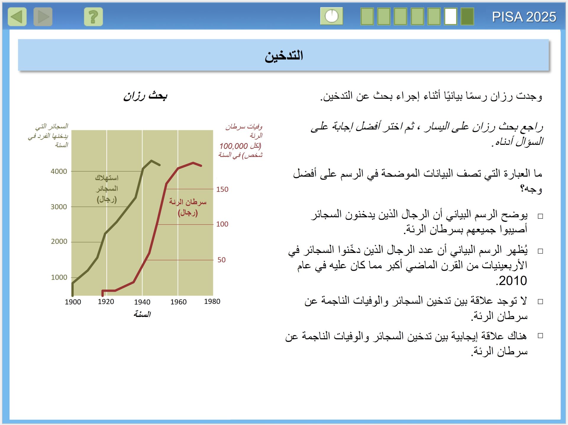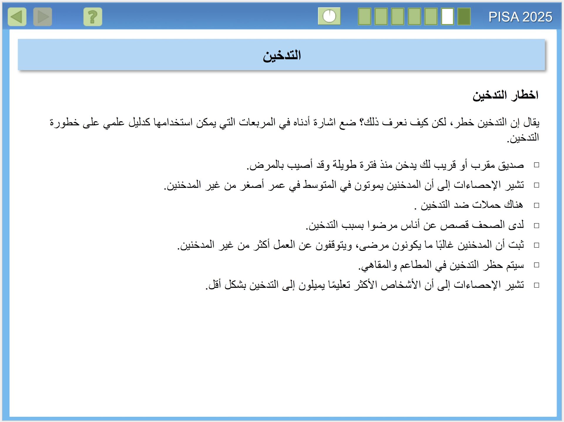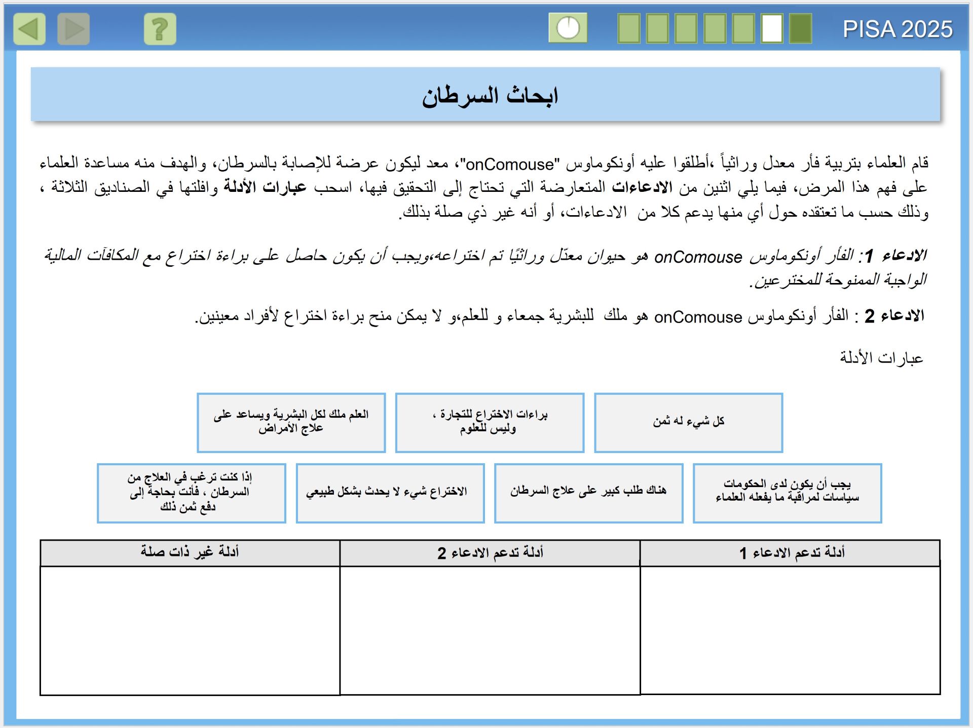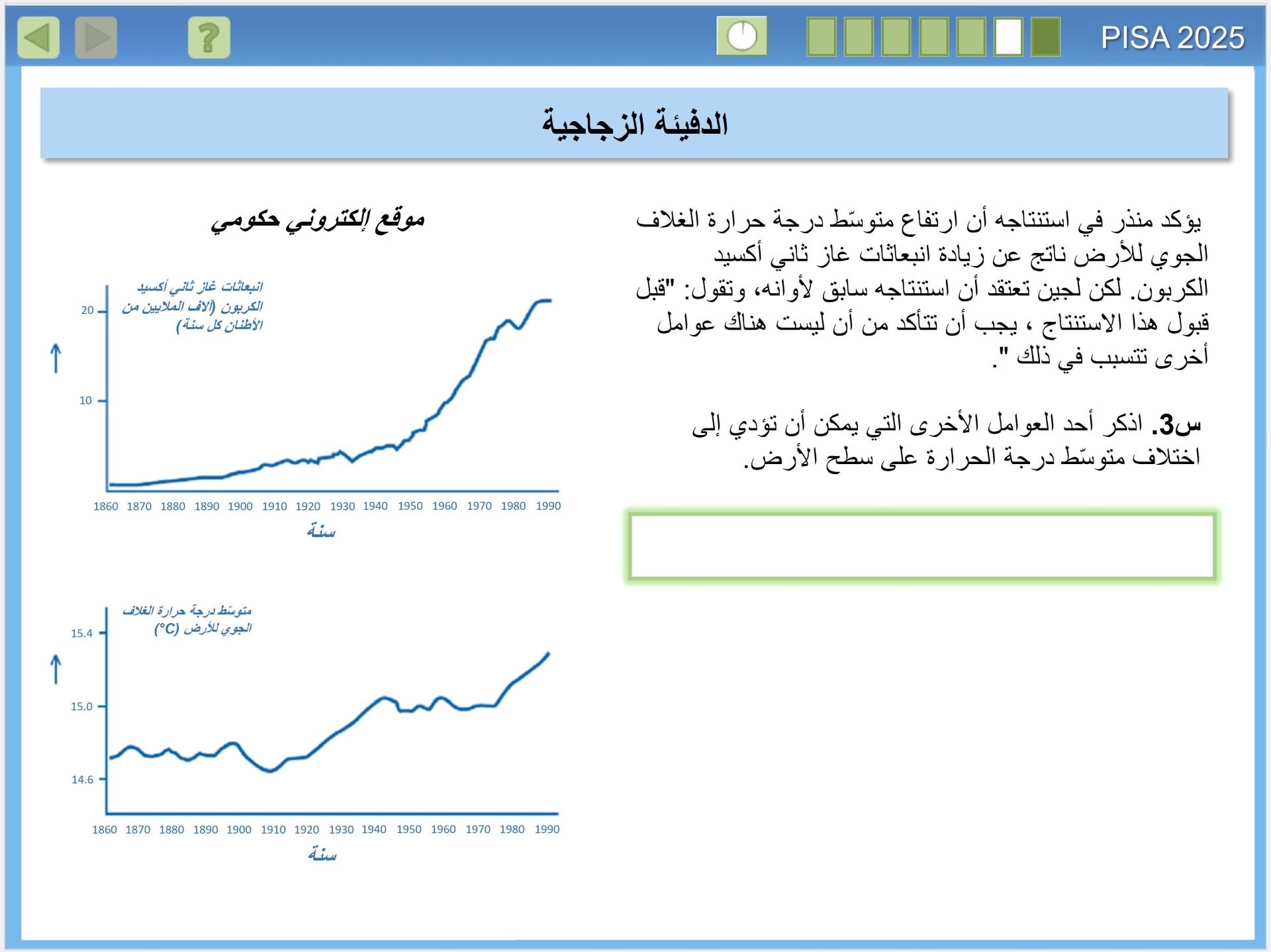 يقيس تقييم بيزا 2025 مدى الجودة في إعداد الطلبة في البلدان لفهم العلوم، وكيف ينتج العلم معرفة موثوقة. وهذا الأمر على درجة كبيرة من الأهمية، للمواطنين الذين يحتاجون اتخاذ قرارات شخصية مستنيرة، بشأن الظواهر المتعلقة بالعلوم مثل: الصحة والبيئة، للانخراط في العمل داخل أسرهم والمجتمعات المحلية والمجتمعات الأوسع، إنه مهم بشكل خاص في القرن الحادي والعشرين، عندما تواجه البشرية مستقبلًا مجهولا، في الوقت الذي تدخل فيه عصر الأنثروبوسين (Anthropocene)، وهو عصر يُحدث فيه الإنسان تأثيرا كبيرا في تغيير أنظمة الأرض. ولذا فإن المعرفة بالعلوم مهمة على المستوى الفردي والمحلي والعالمي، حيث نسعى لمعالجة هذه التأثيرات.